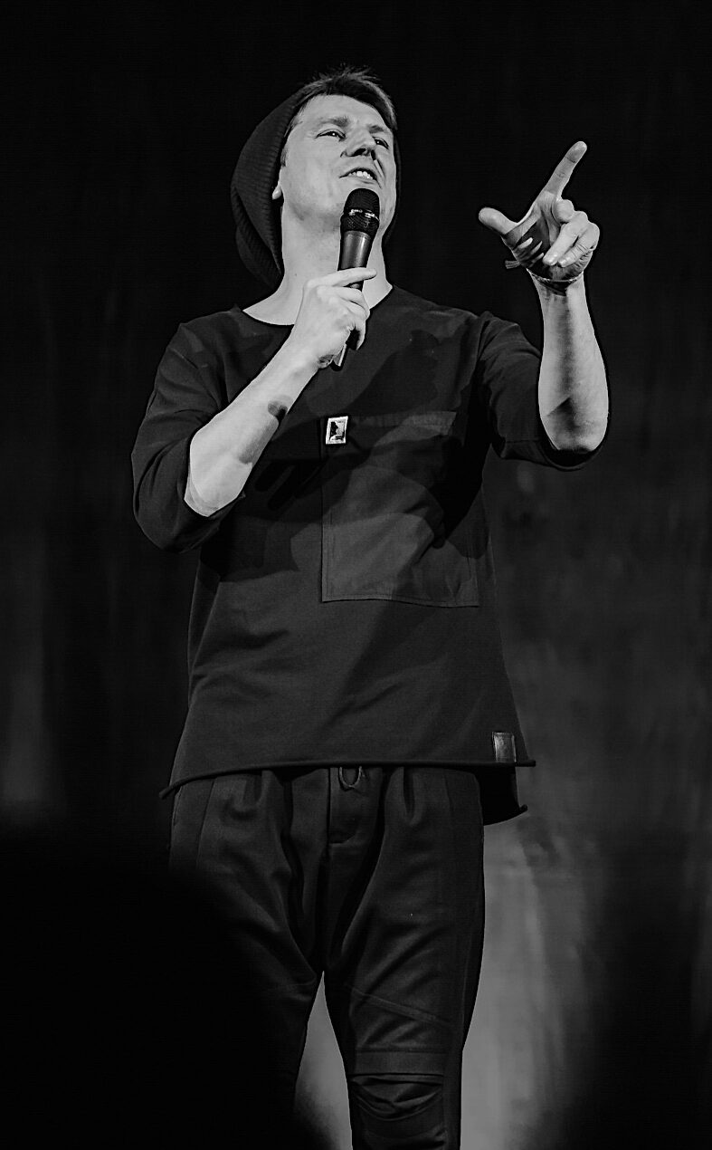 Его стиль — это живая, искренняя энергия и полное слияние с залом. Он мастер импровизации, поэтому его шоу всегда уникально и непредсказуемо. Это не просто монолог, а смесь жанров, искреннего смеха и моментальной реакции, который захватывает с первых секунд.